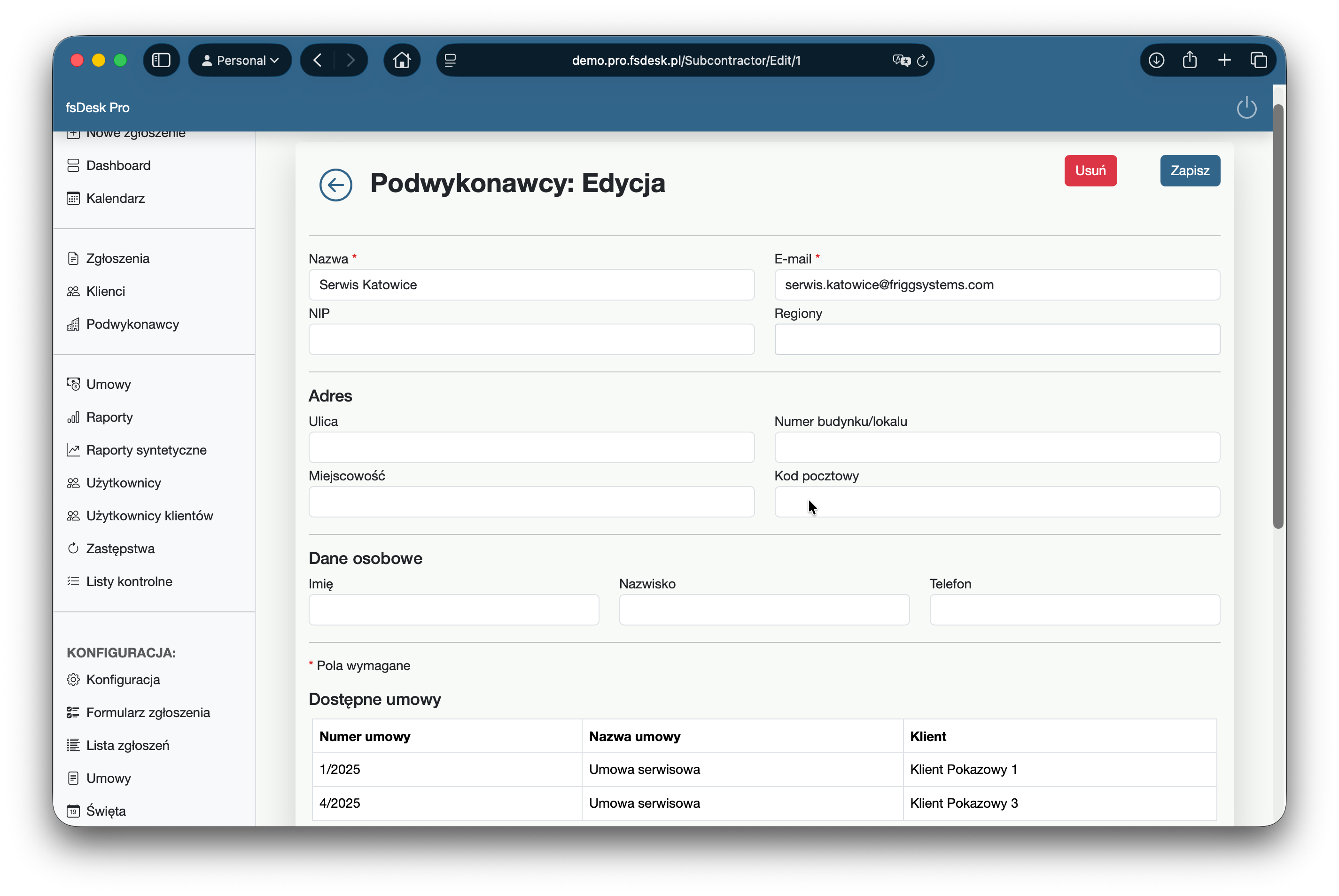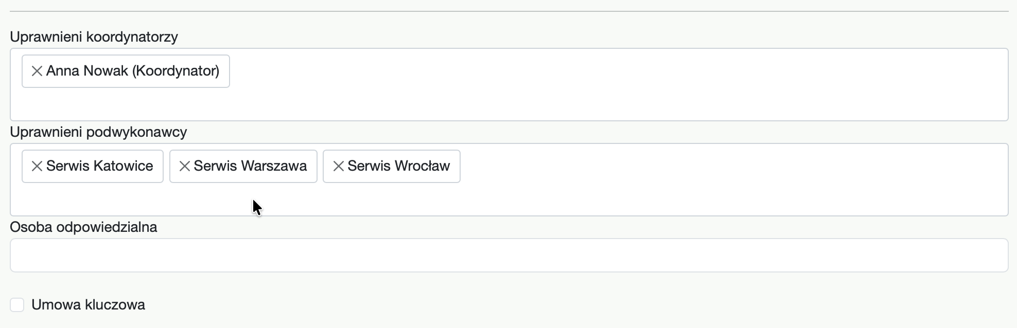 Dodatkowo możesz określić, do obsługi jakich umów dany podwykonawca jest przypisany. Dzięki temu podczas przekazywania zgłoszenia system automatycznie podpowiada właściwego wykonawcę, a cała współpraca przebiega szybciej i bez pomyłek. Masz pełną kontrolę nad zleceniami, a podwykonawca widzi dokładnie to, czego potrzebuje, by sprawnie wykonać zadanie.