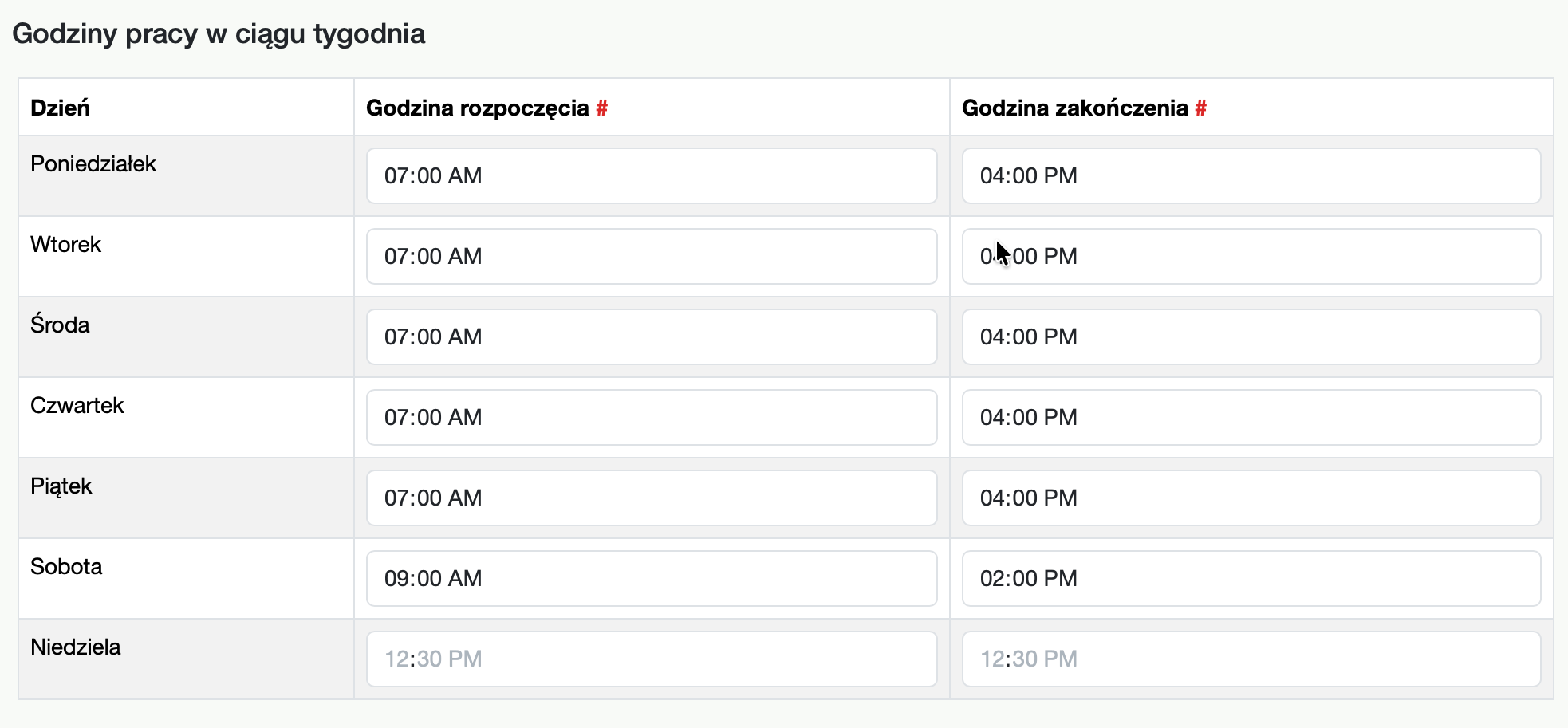 Zdefiniujesz godziny pracy, w których przyjmowane i liczone są zgłoszenia — np. tylko w dni robocze 8:00–16:00 lub w trybie 24/7. To sprawia, że terminy SLA są liczone uczciwie i dokładnie tak, jak zapisano w umowie, a Twój zespół ma jasne priorytety od samego początku.