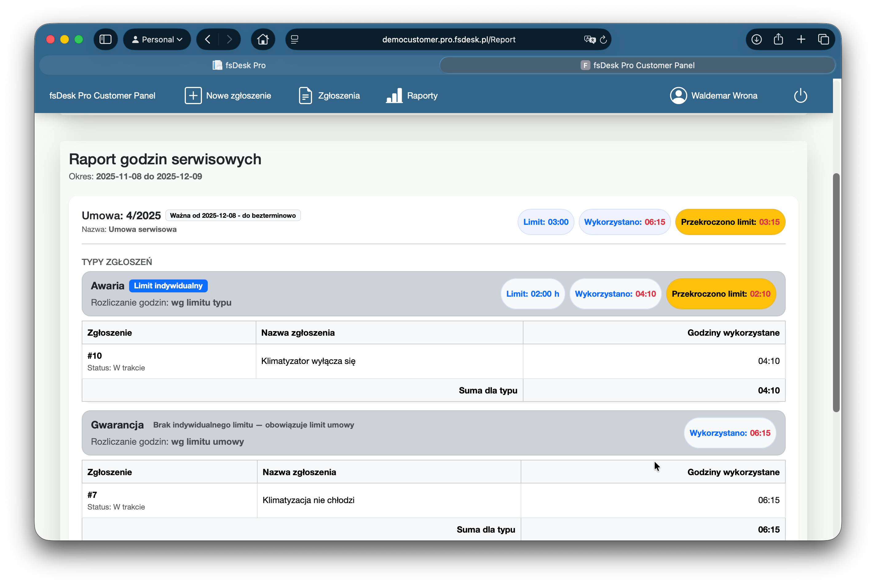 Zarejestrowane czasy służą zarówno do kontroli obciążenia i efektywności zespołu, jak i do rozliczeń z klientem — zgodnie z ustaleniami w umowie i SLA. To przejrzyste dane, które można łatwo wykorzystać w raportach i fakturowaniu, a klient ma jasny wgląd w to, za co dokładnie płaci.