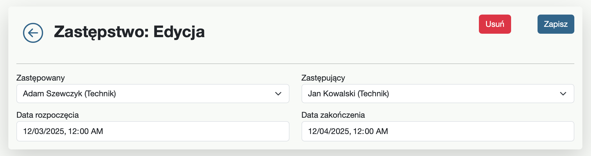 Zastępstwo ustala się na konkretny, określony czas, po którym uprawnienia wracają do pierwotnego użytkownika. To proste rozwiązanie, które zapewnia ciągłość pracy i bezpieczeństwo obsługi klienta.