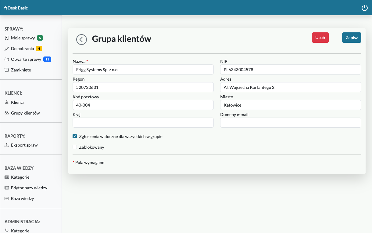 Utwórz grupę klientów z jednej firmy lub działu. Dzięki temu wszyscy będą mieć dostęp do informacji w zgłaszanych sprawach.