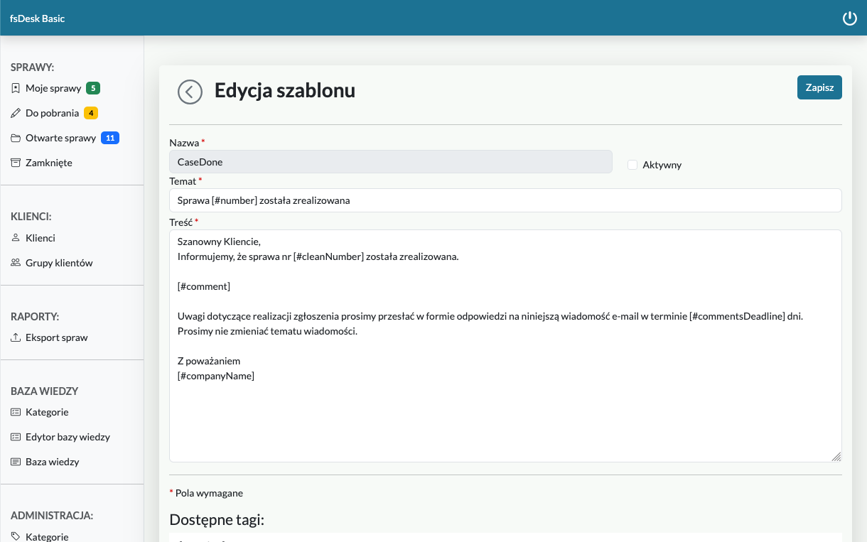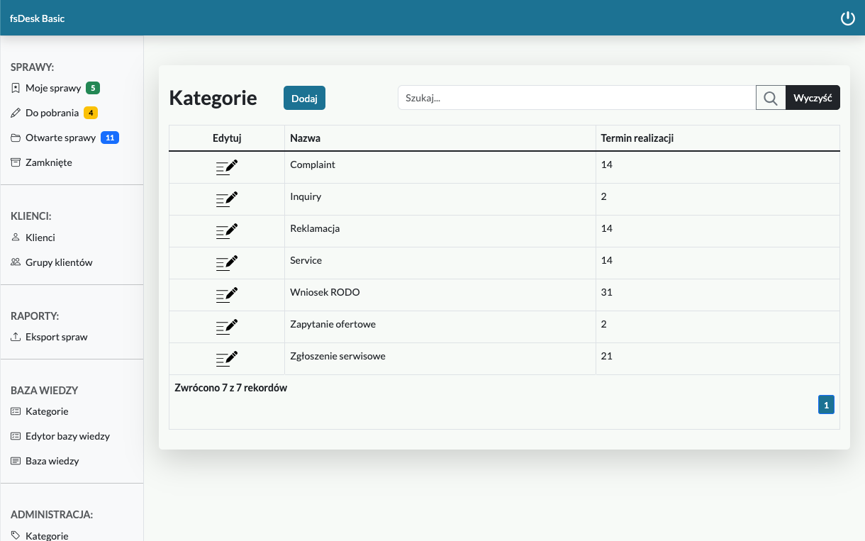 Możesz obsługiwać różne kategorie spraw z różnym terminem realizacji w jednym miejscu! Sprawy handlowe, reklamacje, a może zgłoszenia techniczne? Ustaw tyle kategorii ile potrzebujesz.