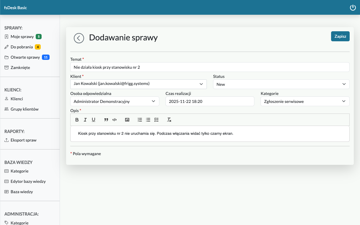 fsDesk Basic to idealne rozwiązanie dla małych firm, które chcą lepiej zarządzać obsługą zleceniami bez inwestowania w drogie systemy.